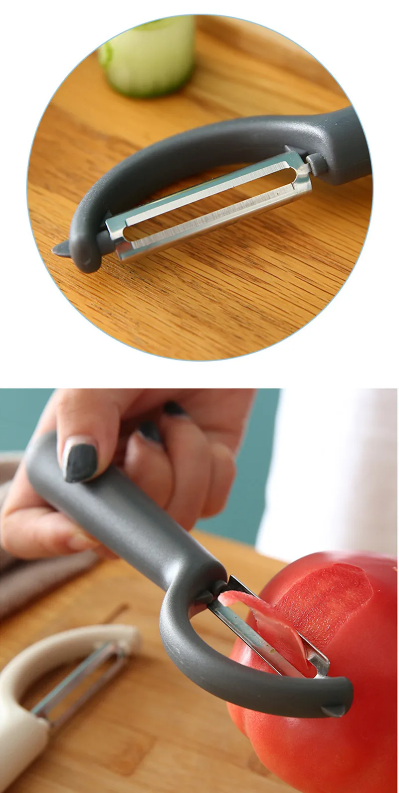 Stainless steel thicken peeler stays ultra sharp and effortless peeling, fast peeling fruits and vegetables.