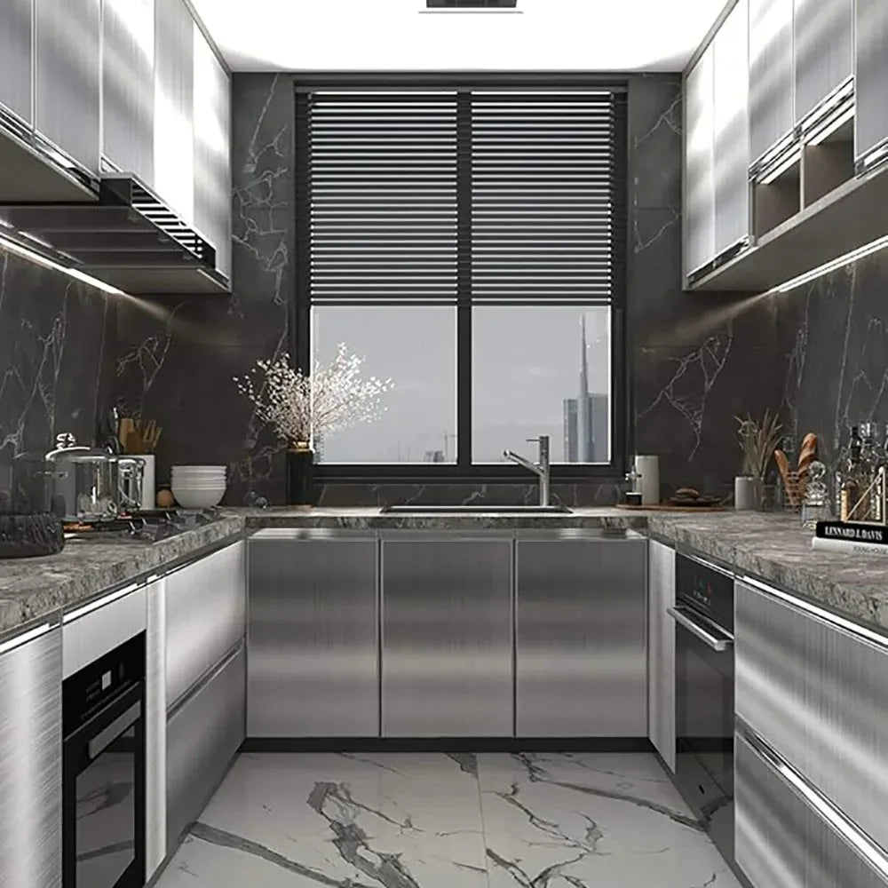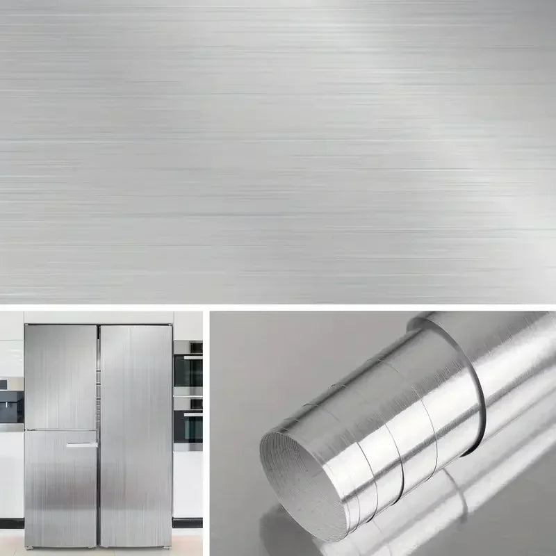 Qfdian Waterproof stainless steel 40cm metal brushed silver wall sticker kitchen living room refrigerator countertop adhesive wallpaper