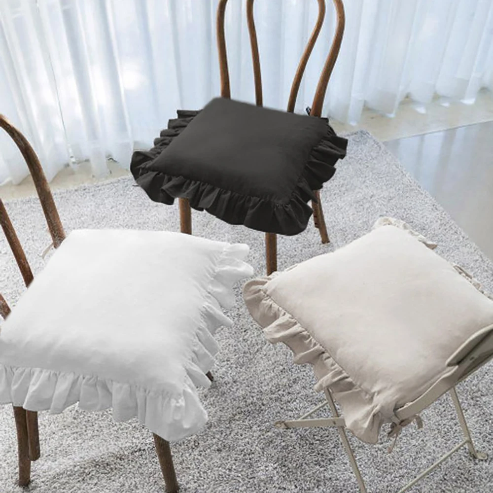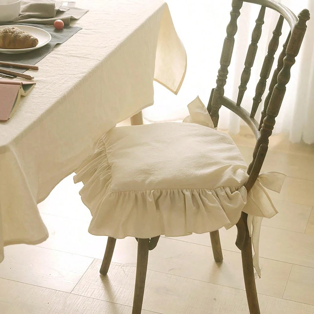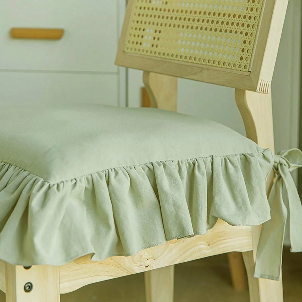 Qfdian White Chair Cover Household Lace Ruffled Seat Slipcovers Living Room Kitchen Office Removable Washable Protector Cushions Covers