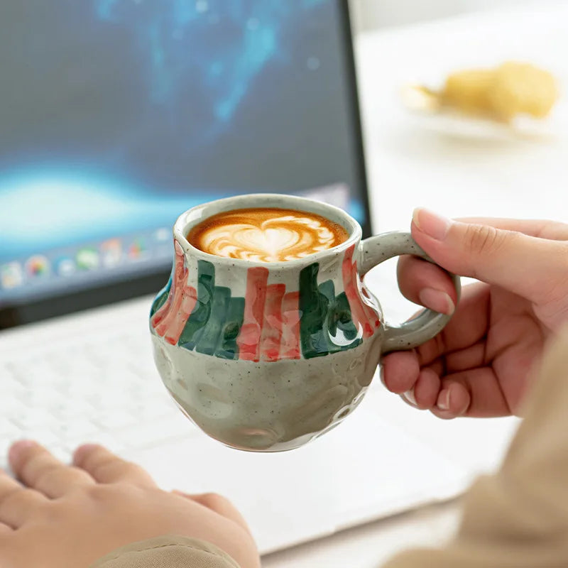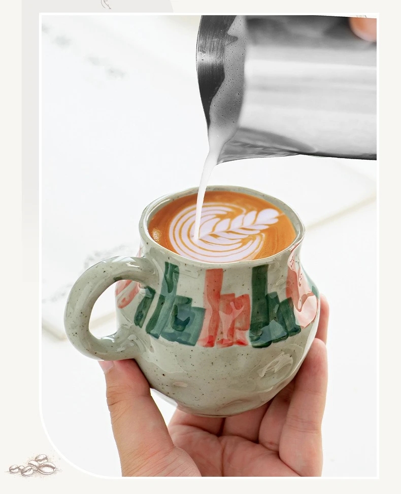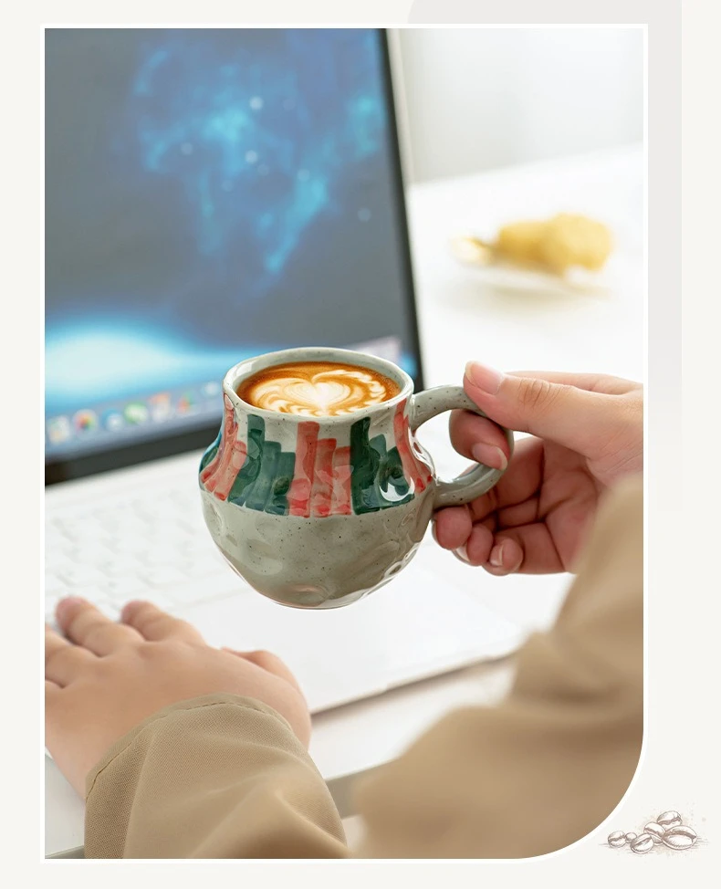 Qfdian Japanese-style Mug Ceramics Retro Hand-drawn Coffee Cups Outdoor Restaurant Latte Cups Hand Punch Home Kitchen Office Cups Gifts