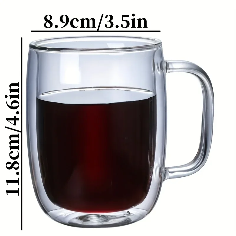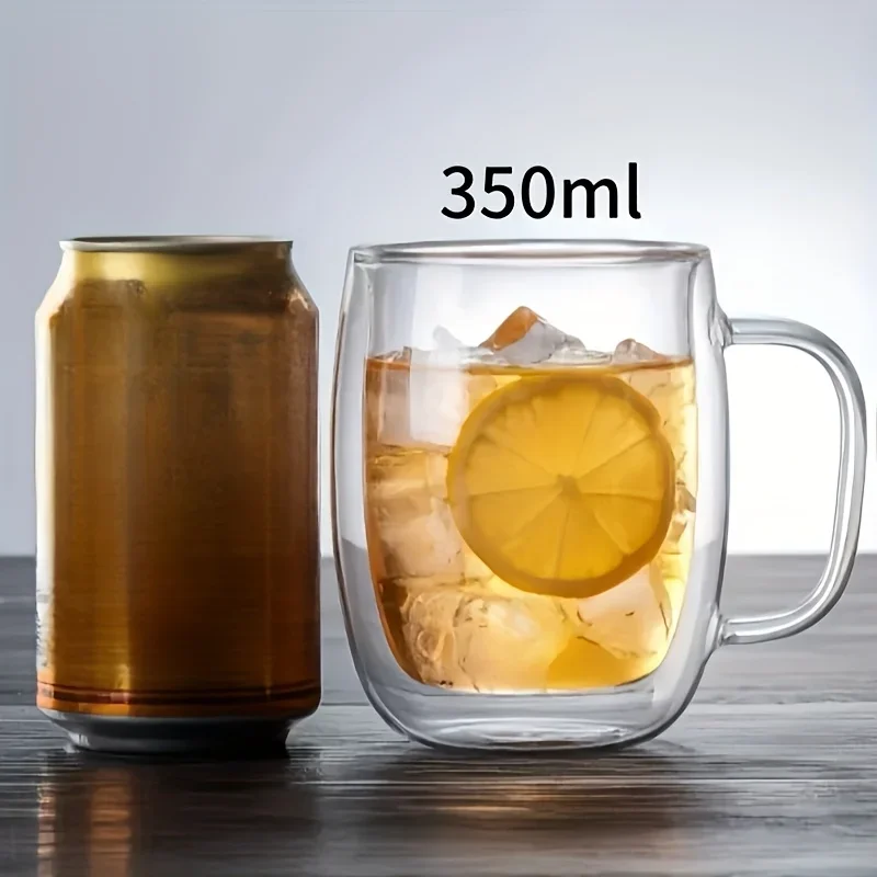 Qfdian  2pcs high borosilicate transparent double-layer glass mugs, thermal insulation handle, anti-scalding, large capacity