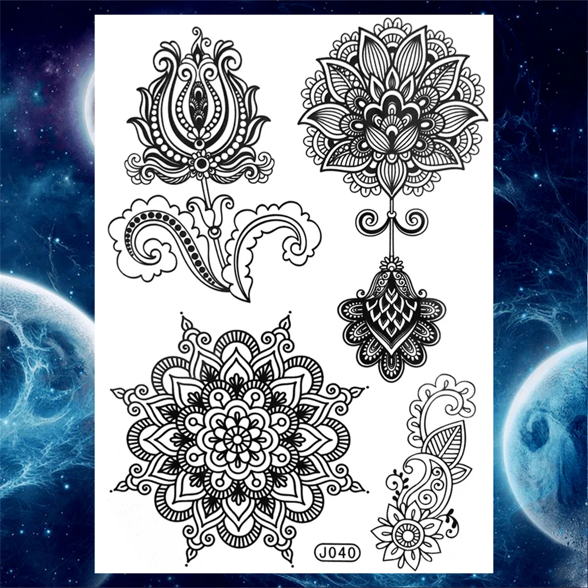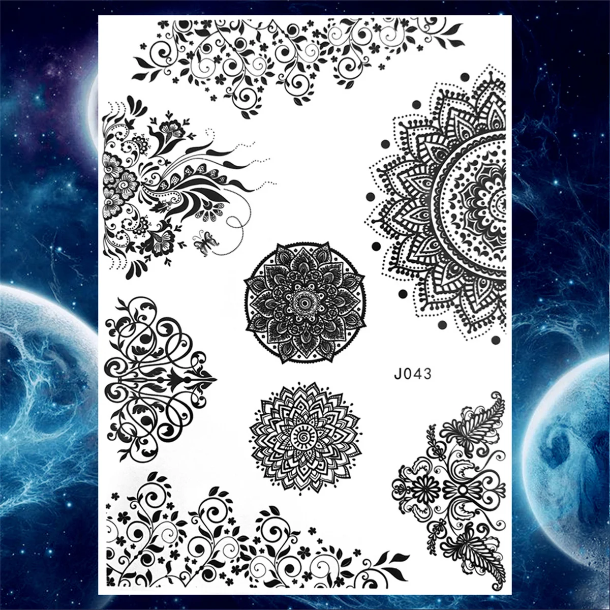 Qfdian Body Art Henna Temporary Tattoos For Women Adult Fake Mandala Flower Tattoo Sticker Feather Butterfly Black Tatoos Leg Feet Foot