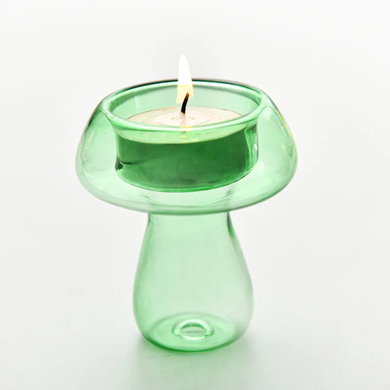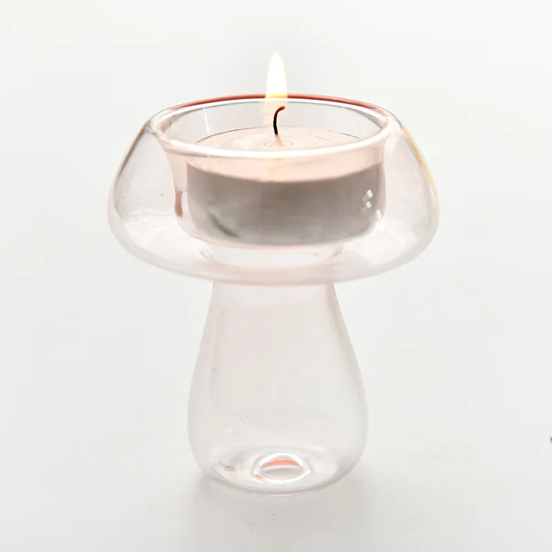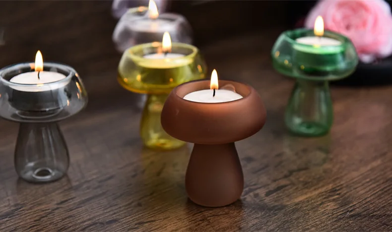 Qfdian  Creativity Mushroom-Shaped Candle Holder Glass Candlesticks Cute Room Decoration Desktop Ornament Home Decoration Ambiance Gifts