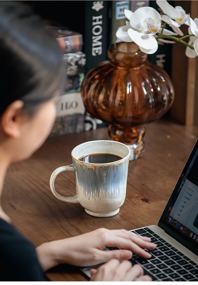 Qfdian Irregular Ceramics Coffee Cup 500ml Large Capacity Mug Breakfast Milk Mug Office and Home Water Cups Fathers Day Gifts