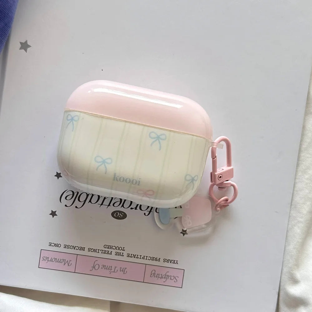 Qfdian Korea lovely pink bow soft silicone case for airpods 4 new fashion girl earphone accessories for airpods 1/2/3 pro 2 coque cases
