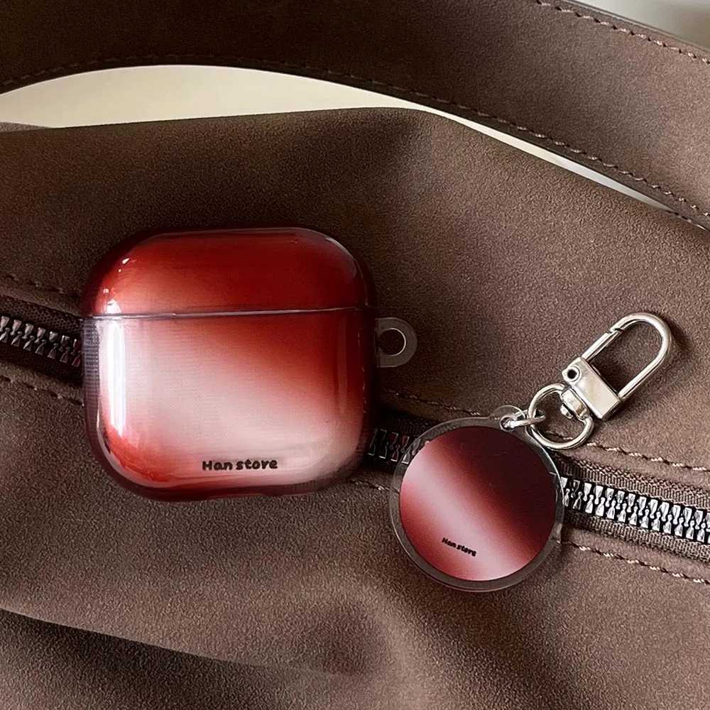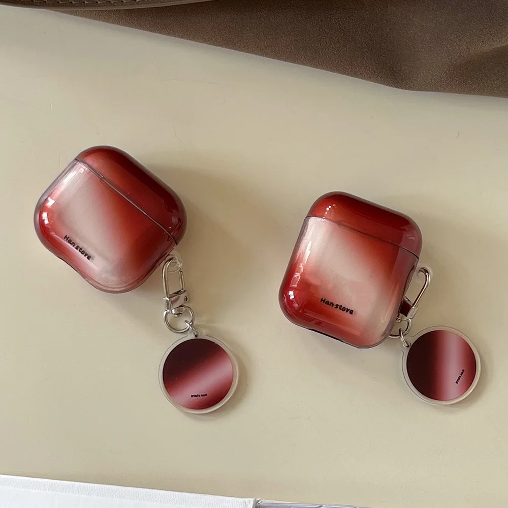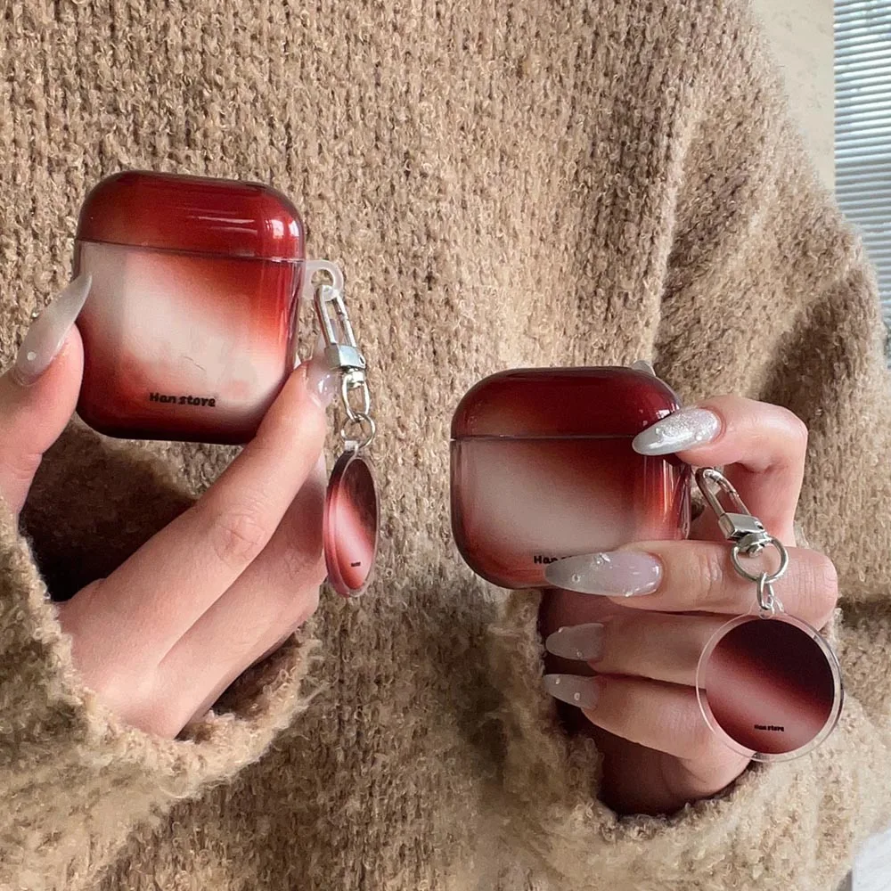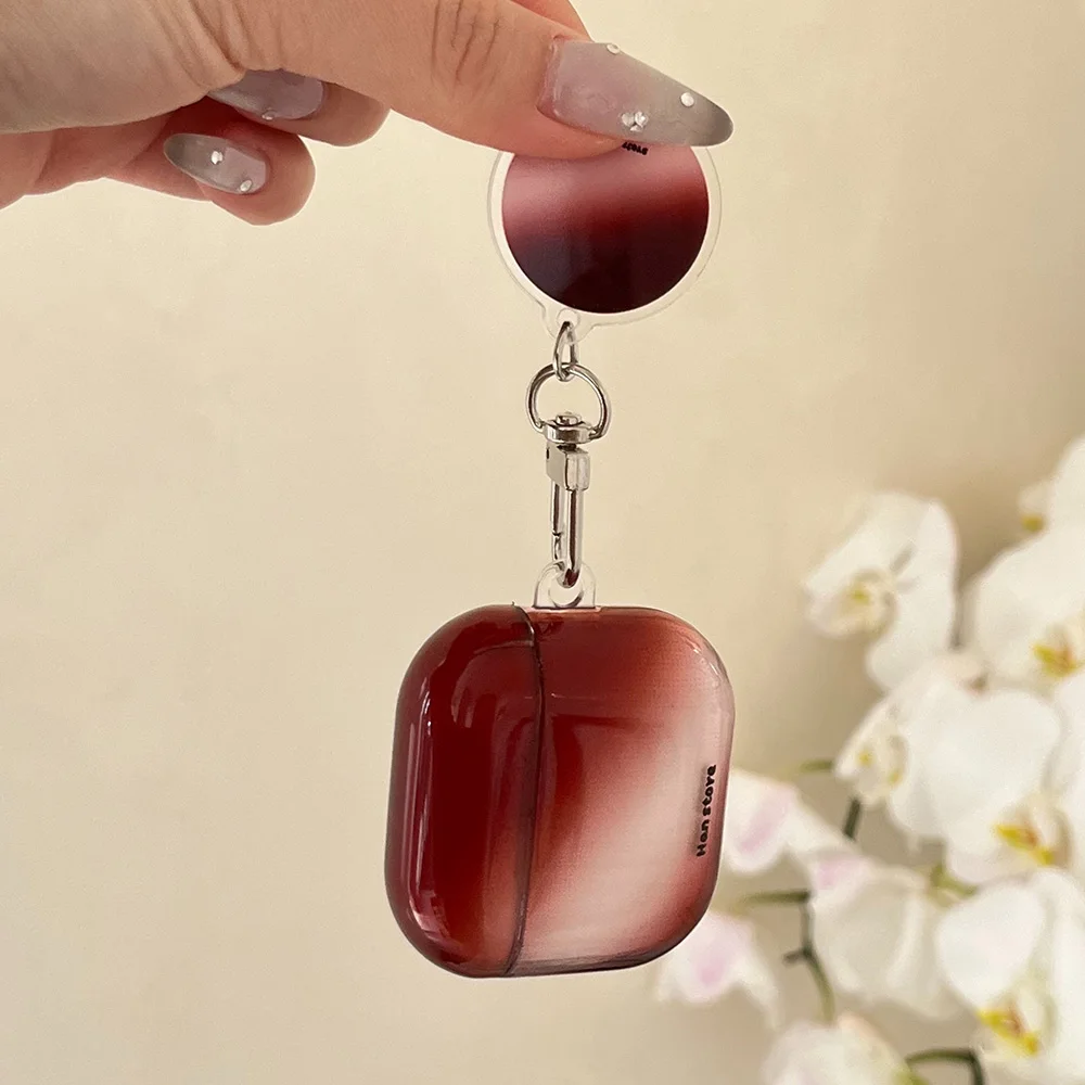 Qfdian Korea Lovely Wine Red Gradient Transparent TPU Headphone Protection Cover Case for AirPods 4 3 2 Pro 2 Cases With Round Pendant