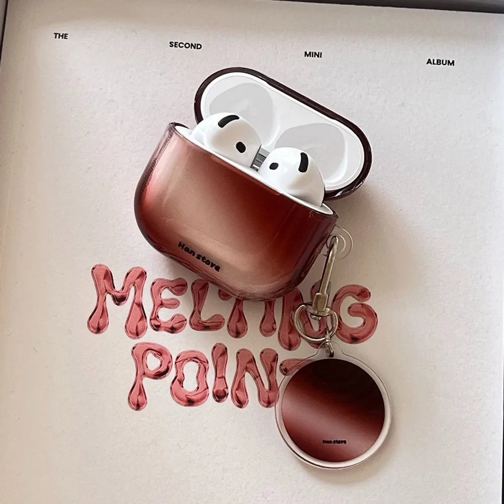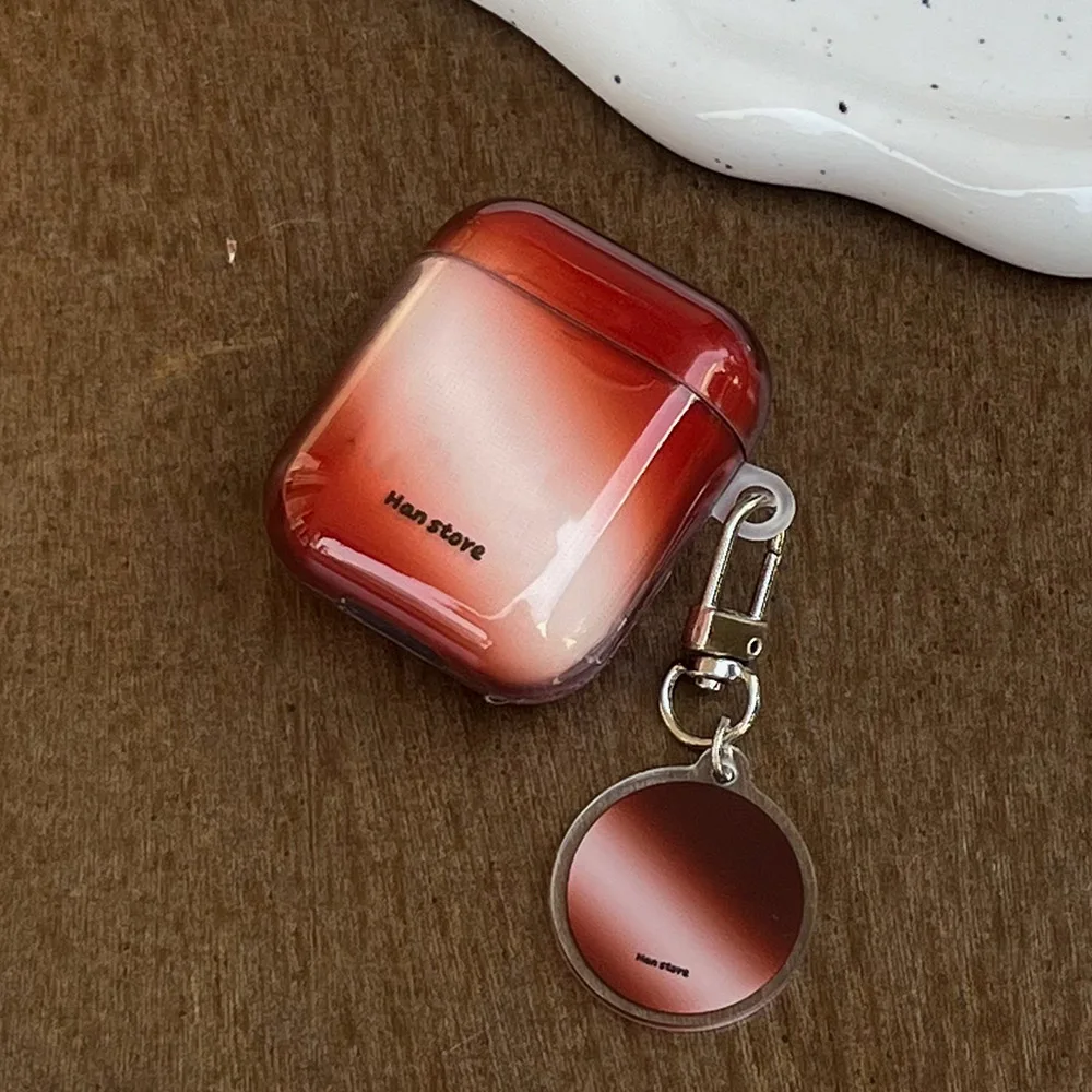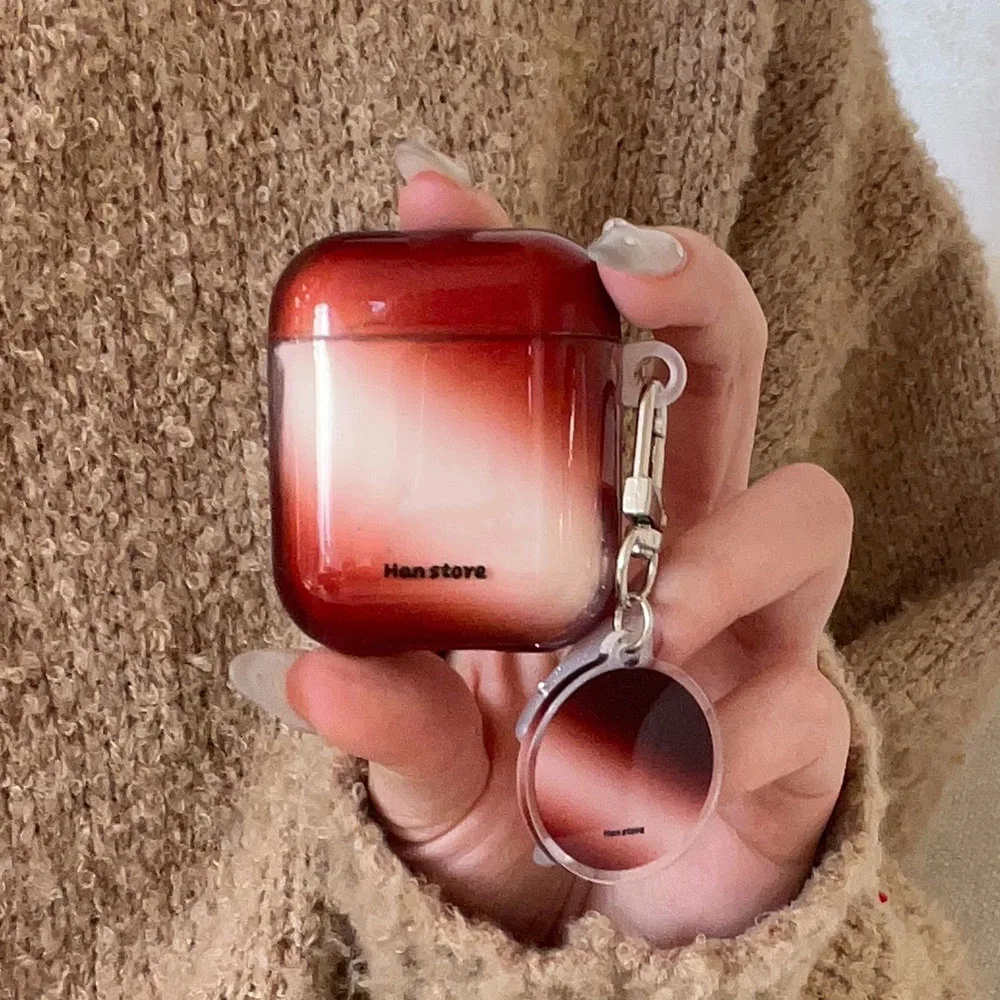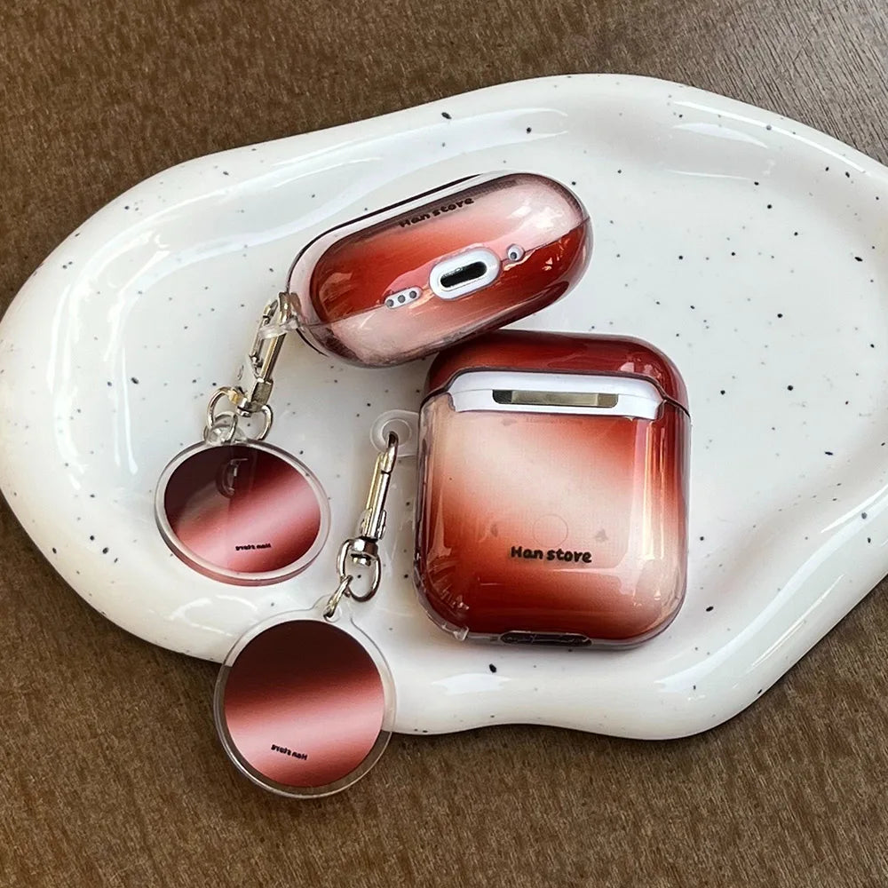 Qfdian Korea Lovely Wine Red Gradient Transparent TPU Headphone Protection Cover Case for AirPods 4 3 2 Pro 2 Cases With Round Pendant