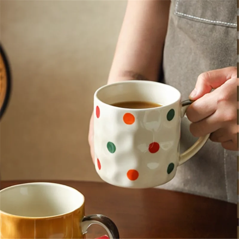 Qfdian Retro INS Ceramic Mug Glazed Underglaze Color Breakfast Premium Coffee Cup Water Drinking Cup for Daily Use